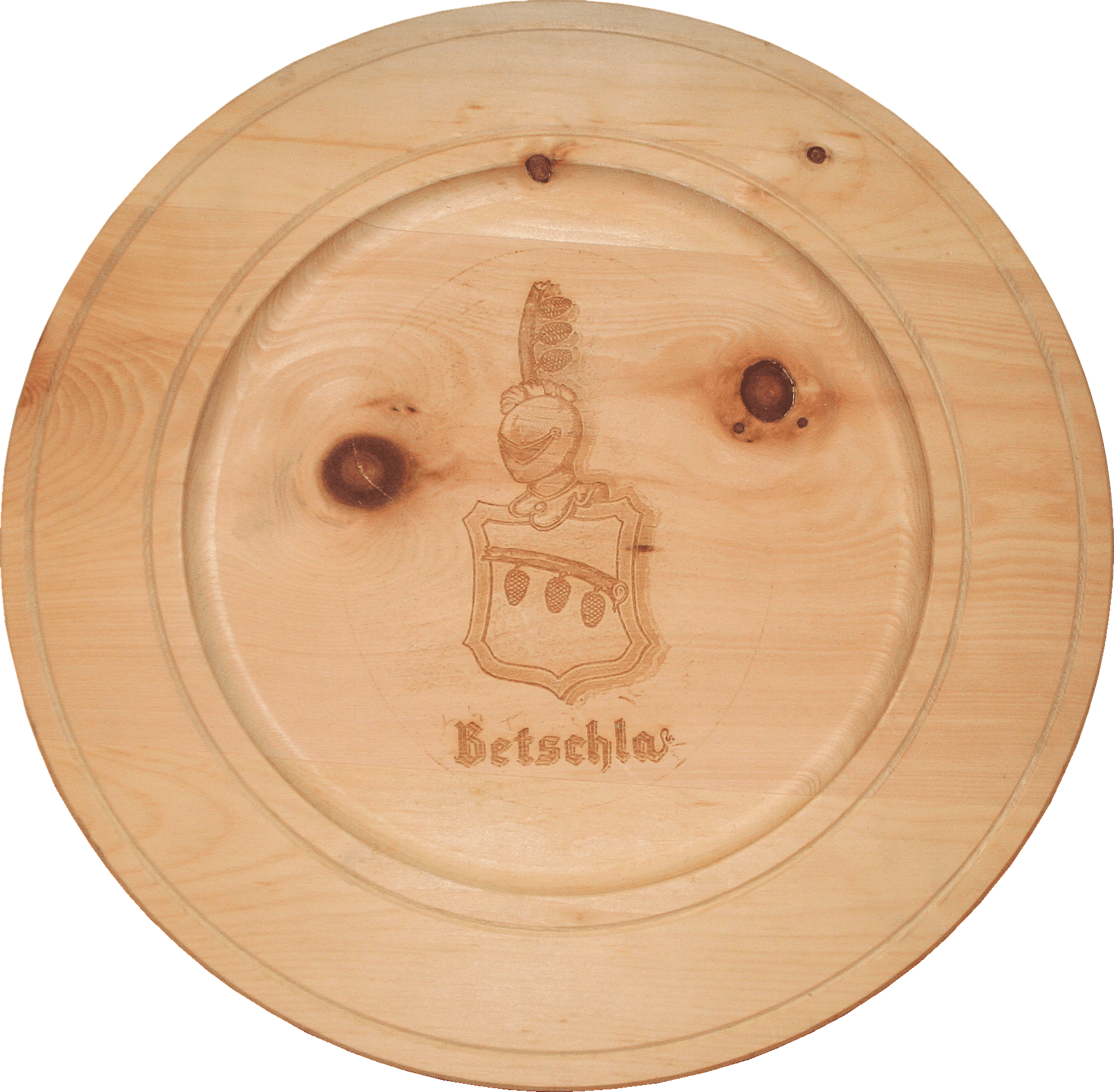 Holzteller in Arvenholz massiv. Form rund mit Vertiefung und V-Fugen (Verzierung) auf dem Tellerrand. Teller in drei verschiedene Grössen. Teller ohne Schnitzerei oder Lasergravuren.