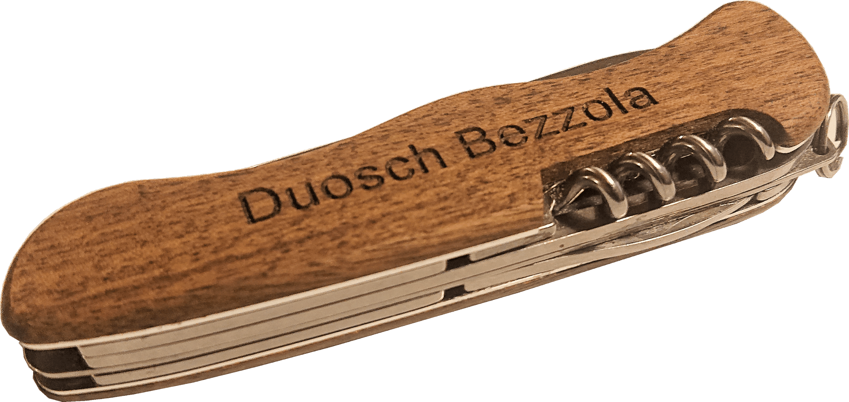 Sackmesser Modell Zernez mit Nussbaumschalen. Lasergravur vorne mit Logo Zernez und Hinten mit Name laut Angaben