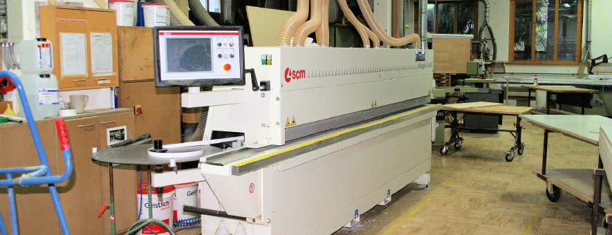 Dank unserer neuen Kantenleimmaschine verschmelzen die Kanten mit der Platte und sind mit dem farblich angepassten Leim praktisch unsichtbar.